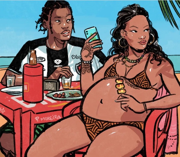 Aproveitando a deixa, o ilustrador paraibano Paulo Moreira, conhecido nacionalmente pelas tirinhas publicadas em suas redes sociais, representou a cantora junto com o marido, o cantor A$ap Rocky, como se estivessem em um dia normal em umas das praias da Capital paraibana.