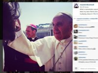 "Que experiência extraordinária testemunhar o Papa Francisco abençoar o meu querido amigo e colega Rodrigo Santoro, que está interpretando Jesus em Ben Hur, escreveu a atriz, que faz a personagem bíblica Esther no longa.