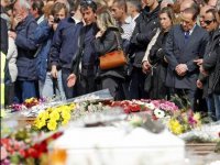 Centenas de pessoas se reuniram em volta dos 205 caixões, muitos deles cobertos de flores e fotos. O funeral ocorreu numa academia de polícia na cidade montanhosa de L’Aquila, a mais atingida pelo tremor de segunda-feira. A missa foi conduzida pelo Secretário de Estado do Vaticano, o cardeal Tarcisio Bertone, e começou com uma mensagem do papa Bento XVI. "Nessas horas dramáticas quando uma tragédia atingiu essa terra, eu me sinto presente espiritualmente em meio a vocês e compartilho sua angústia", dizia a mensagem.