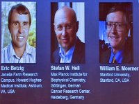 Eric Betzig é americano e trabalha no Howard Hughes Medical Institute, no estado da Virgínia. Stefan Hell é alemão e atua no Instituto Max Planck para Química Biofísica, em Göttingen, e no Centro Alemão de Pesquisa de Câncer, em Heidelberg. William E. Moerner é americano e trabalha na Universidade Stanford, na Califórnia.