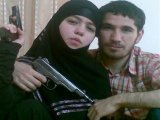O jornal publica uma fotografia de Abdurajmanova, com rosto de menina e um véu islâmico na cabeça, ao lado de Magomedov. Os dois exibem armas.