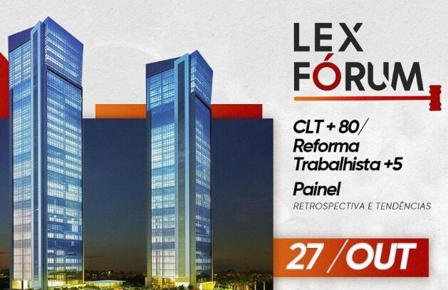 Estão abertas as inscrições para o Lex Fórum – 2023 / CLT +80 / Reforma Trabalhista +5. O evento vai ocorrer no dia 27 de outubro de 2023, no Duo Corporate Towers, João Pessoa – PB.