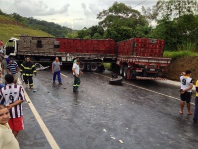 Um acidente com três carretas bloqueou o trânsito na BR-101, no sentido João Pessoa – Recife, próximo ao município de Goiana, na Mata Norte.