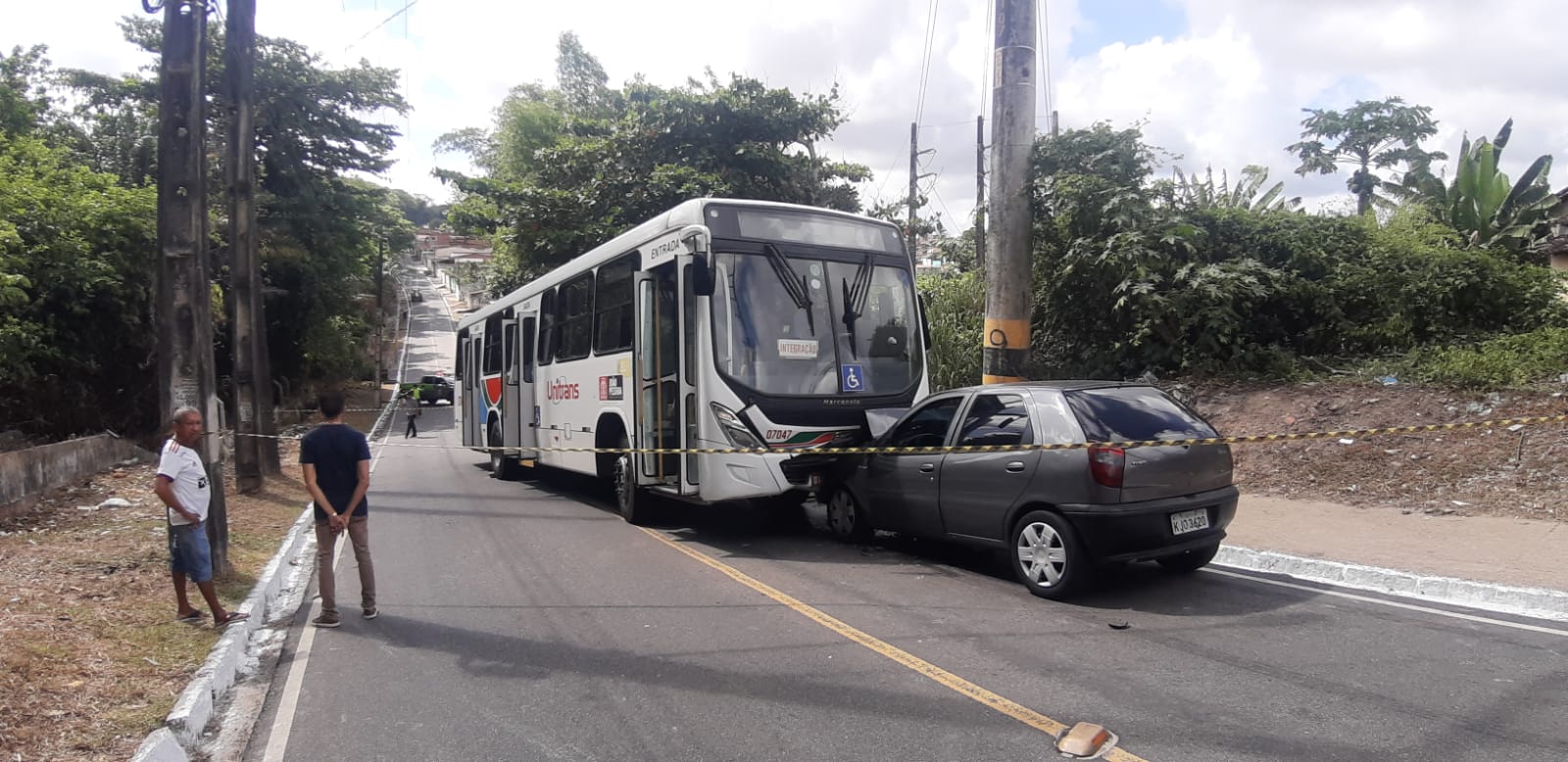 Na manhã desta quarta-feira (14), um homem ficou ferido em um acidente envolvendo um ônibus de linha e um carro, na localidade conhecida como ladeira do Rangel, que liga o bairro a Jaguaribe.