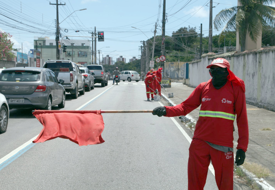 Também há equipes de agentes de limpeza fazendo a zeladoria da Avenida Hilton Souto Maior e da Perimetral Sul. Outras turmas estão na Praça do Coqueiral, em Mangabeira, e na Praça da Paz, nos Bancários.