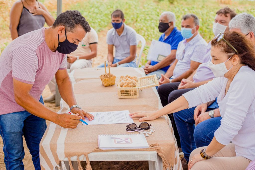 A solenidade de assinatura dos contratos aconteceu no Assentamento Nossa Senhora Aparecida, em Itabaiana, e contou com a presença do secretário Executivo da Agricultura Familiar, Jonildo Cavalcante; a representante da Natural Cotton Color, Francisca Vieira; extensionistas da Empaer, Antônio Jocemar e Berenice Oliveira; prefeitos e agricultores dos municípios beneficiados, além de representantes dos Conselhos Municipais de Desenvolvimento Rural Sustentável (CMDRS), sindicatos e associações rurais.