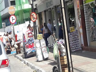 Apesar da proibição, ambulantes continuam ocupando irregularmente diversas ruas de João Pessoa. A redação fotografou na manhã desta quinta-feira (18), diversas barracas continuando a dividir o espaço dos cidadãos com os consumidores que circulam pelo comércio.