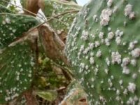 A cochonilha do carmim é um pequeno inseto de origem mexicana que se alimenta da seiva e mata a planta rapidamente.