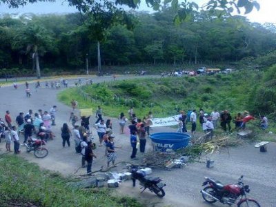 Com galhos de árvores, pedras e uma caixa d’água vazia a manifestação interrompeu por completo a entrada da cidade. Ninguém entra e ninguém sai. Quem precisa passar pelo local apoia o movimento.