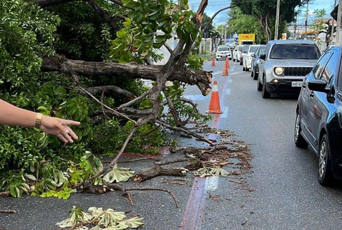 É recomendada a escolha de outras rotas até remoção da árvore por parte da Secretaria de Desenvolvimento e Controle Urbano (Sedurb), que às 8h10 já estavam no local.
