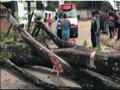 Um homem ficou ferido na perna após uma árvore cair sobre ele na tarde desta quarta-feira (21), no bairro dos Novais.