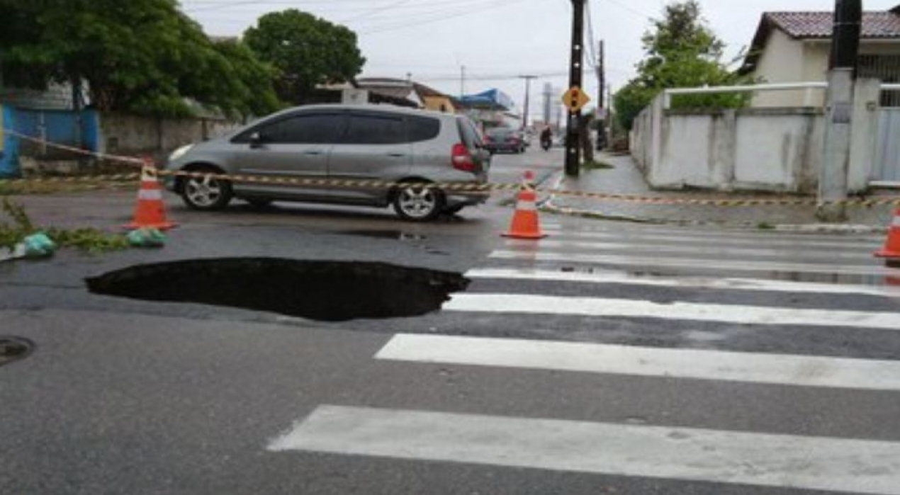 Aconteceu mais uma vez no bairro da Torre, em João Pessoa. Uma parte do asfalto de uma das ruas não aguentou ás fortes chuvas que caíram no final de semana e cedeu, formando uma grande cratera no cruzamento das ruas Sinésio Guimarães e Caetano Figueira.