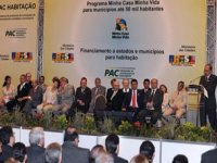 O governador José Maranhão participou nesta terça-feira (12), no Centro de Eventos e Convenções Brasil 21, em Brasília, da solenidade de assinatura de protocolos dos programas Minha Casa, Minha Vida (MCMV) e de Aceleração do Crescimento (PAC), que beneficiam 126 municípios paraibanos com população de até 50 mil habitantes. Ele integrou a mesa ao lado do presidente Luiz Inácio Lula da Silva, da ministra-chefe da Casa Civil, Dilma Rousseff; do ministro das Cidades, Marcio Fortes, e demais governadores, além da presidente da Caixa Econômica Federal, Maria Fernanda.
