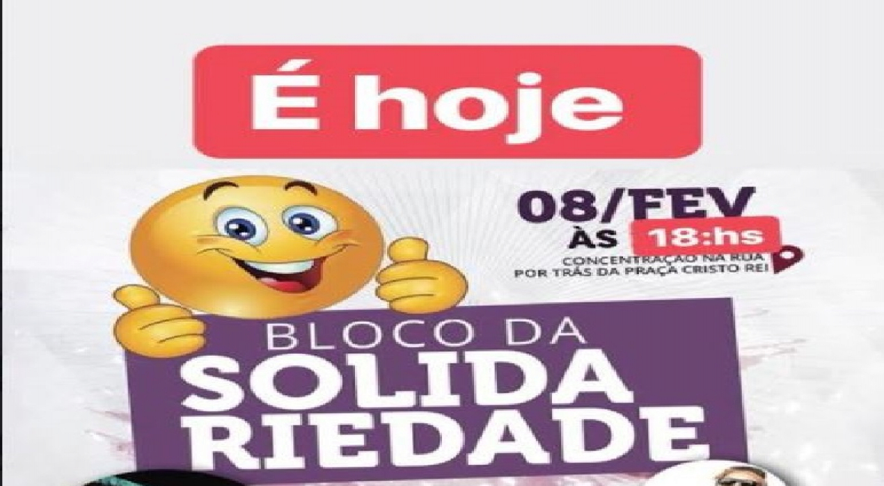 A bateria da Escola de Samba Malandros do Morro e DJ ‘Cris L’ serão os responsáveis por animar e arrastar os foliões do Bloco da Solidariedade este ano. O bloco que está comemorando cinco anos sairá na quinta-feira (8), a partir das 18h, na rua por trás da Praça Cristo Rei, no bairro de Mangabeira, dentro da programação do Folia de Rua 2018.