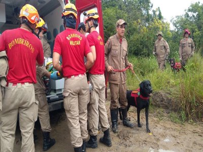As buscas foram feitas com o auxílio de um cão treinado para buscas e salvamentos.