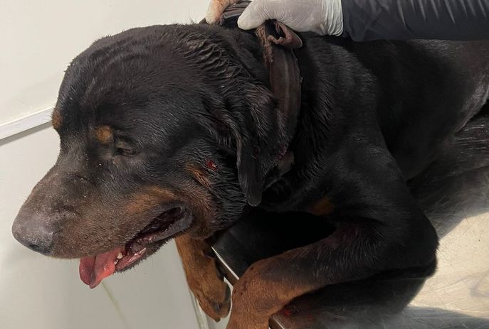 Nesta quinta-feira (27), um cachorro da raça rottweiler, que estava ferido à bala, invadiu uma creche no bairro Colinas do Sul, em João Pessoa.