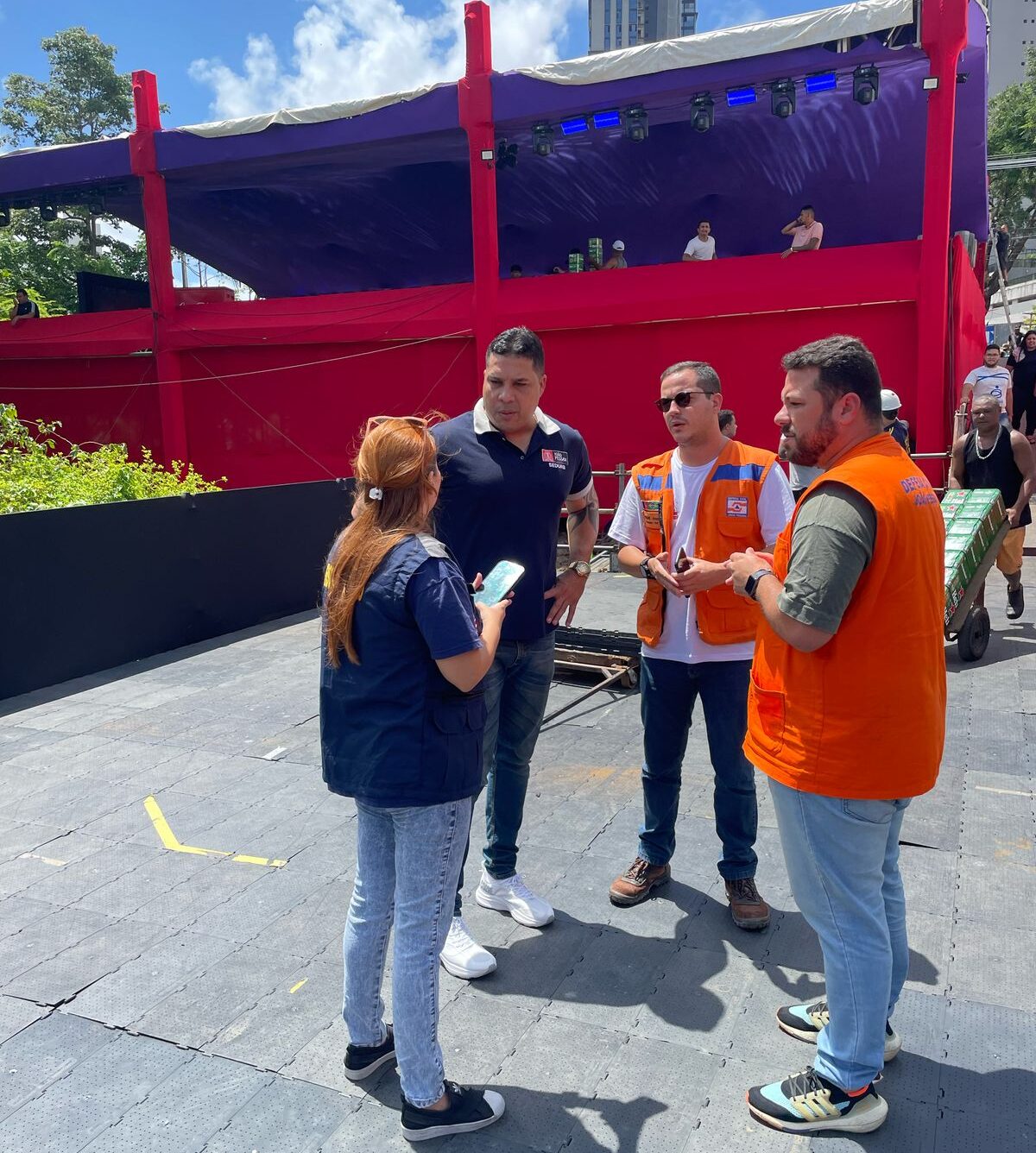 A Coordenadoria Municipal de Proteção e Defesa Civil de João Pessoa (Compdec-JP) realizou, nesta sexta-feira (14), junto com o Corpo de Bombeiros Militar, Secretaria de Desenvolvimento Urbano (Sedurb) e Conselho Regional de Engenharia e Agronomia da Paraíba (Crea-PB), a inspeção dos camarotes da Via Folia instalados na Avenida Epitácio Pessoa.
