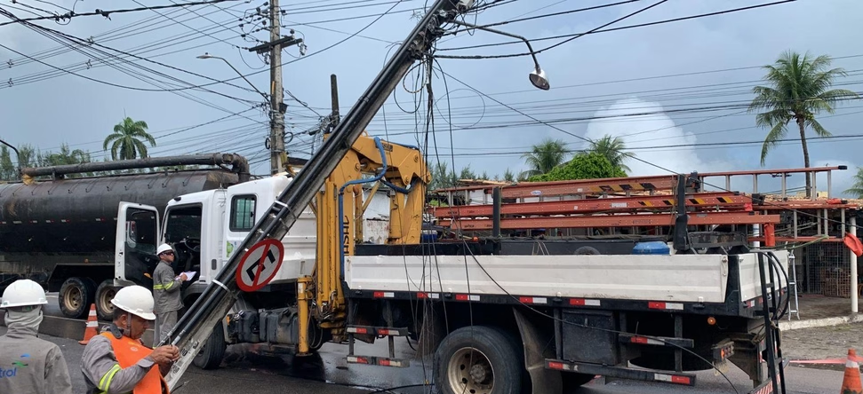 Um caminhão colidiu com um poste e derrubou a estrutura na manhã desta quarta-feira (06) na Avenida Flávio de Melo Coutinho, no Centro de Santa Rita, região metropolitana de João Pessoa.