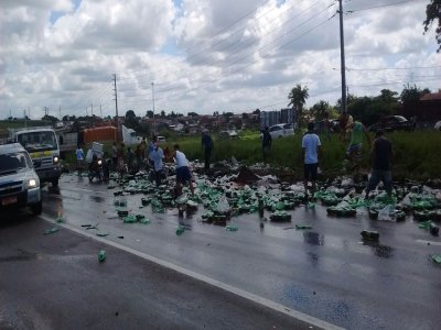 Com o impacto, parte da carga ficou espalhada na rodovia e muitos populares aproveitaram para saquear os refrigernates e água mineral.