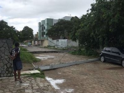 Um dos postes teria caído por cima de uma carro que estava estacionado em uma das ruas.