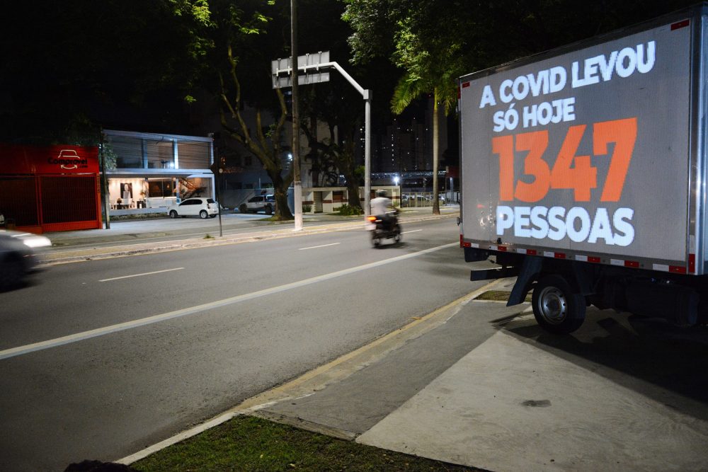 A Câmara Municipal de João Pessoa iniciou nesta segunda-feira (19), uma campanha de alerta aos cuidados de prevenção ao coronavírus, através da projeção de mensagens em prédios e pontos estratégicos de grande movimento da cidade. O primeiro local escolhido para iniciar a campanha foi a Avenida Epitácio Pessoa, um dos principais corredores de tráfego da cidade. No local foi exibida a frase “A covid levou só hoje 1.347 pessoas”.