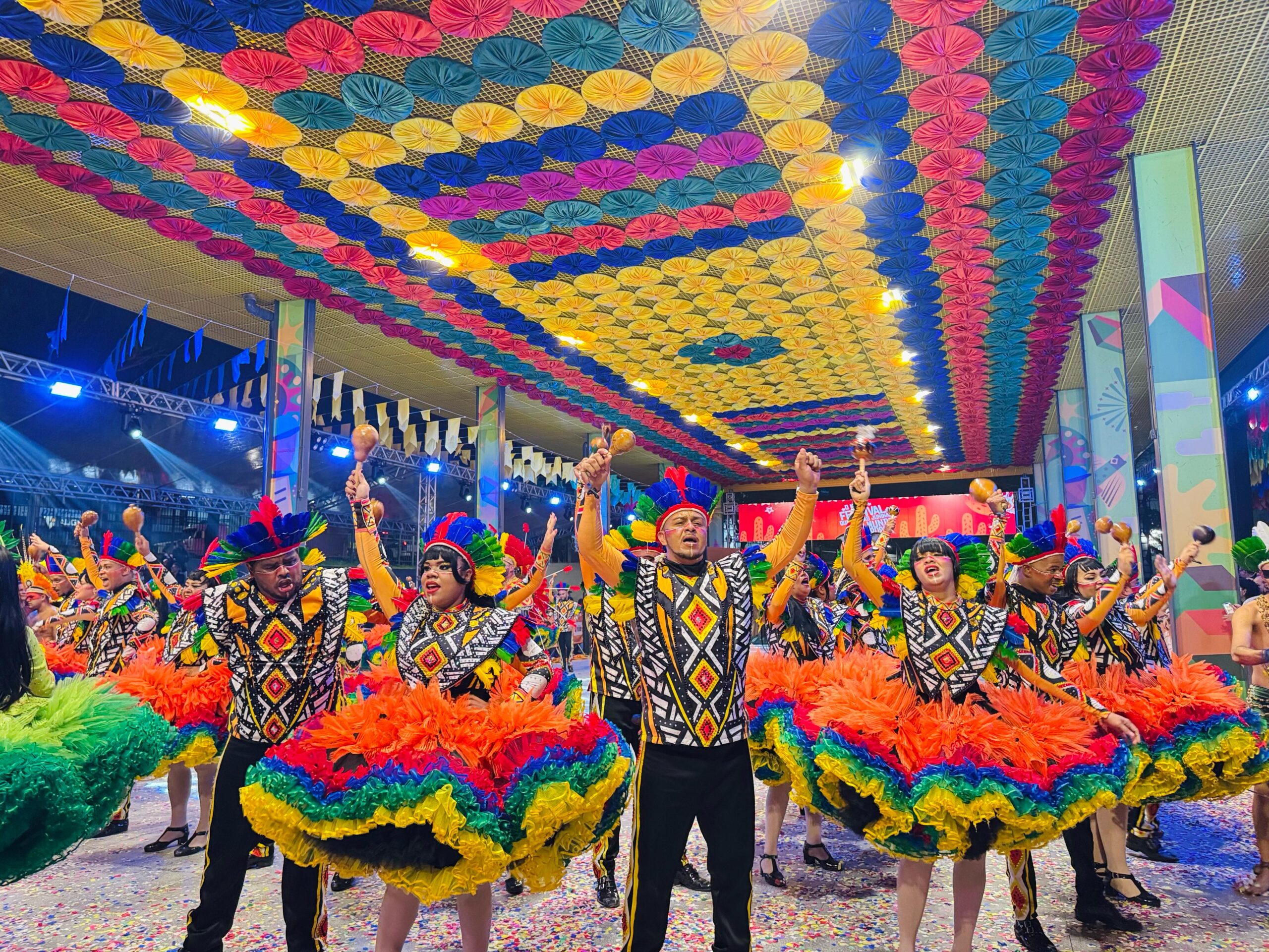 Foram três dias intensos de apresentações, com coreografias elaboradas, figurinos deslumbrantes e cenários que mais pareciam obras de arte. A energia contagiante das quadrilhas estilizadas impactou o público, que lotou as arquibancadas e saiu extasiado com a qualidade das performances. Ao todo, dez estados participaram da competição, promovendo um rico intercâmbio cultural marcado pela tradição, criatividade e talento. A grande campeã foi a Junina Lumiar, da capital pernambucana, Recife, que conquistou o primeiro lugar com um espetáculo inspirado na Literatura de Cordel. Cada detalhe da apresentação, dos figurinos às coreografias, celebrou a estética das xilogravuras e a riqueza da cultura nordestina.