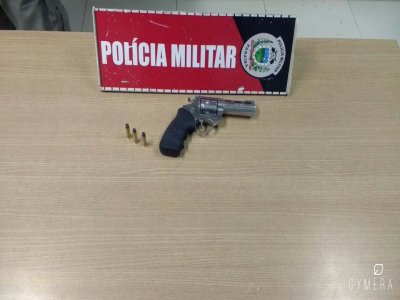 Com ele a polícia apreende um revólver cal. 38 inox, três janelas reforçadas, três polegadas, com três munições intactas.