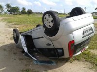 Na manhã desta quinta-feira (10), um carro foi encontrado com as rodas para cima, após ter capotado próximo ao estádio Almeidão, em João Pessoa.
