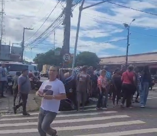 Na manhã desta sexta-feira (05), um veículo capotou após se envolver em uma colisão com um ônibus no cruzamento da Avenida Dom Pedro II com a Rua Rodrigues de Carvalho, localizado no Centro de João Pessoa.