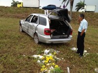 O veículo saiu da pista e capotou. A PRF investiga se houve falha mecânica no carro. O condutor e o passageiro tiveram ferimentos leves e um deles foi encaminhado para o Ortotrauma. O corpo que estava sendo transportado foi retirado do local por outro veículo da funerária.