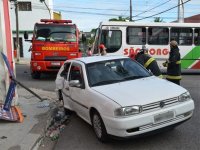 Um homem de 32 anos ficou preso nas ferragens de um carro após um acidente envolvendo um ônibus no cruzamento da Rua Maciel Pinheiro com a Padre Azevedo, no Centro de João Pessoa. Segundo o cabo Rideares, do Corpo de Bombeiros, uma equipe dos Bombeiros conseguiu tirá-lo do veículo e ele foi lavado para o hospital pelo Samu. O homem ferido disse aos Bombeiros que seguia normalmente na via e que o ônibus avançou o sinal vermelho, colidindo com a lateral do carro (Foto: Walter Paparazzo/G1)