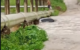 Imagens mostram o veículo encoberto pela água. De acordo com moradores, o condutor, um idoso, tentou passar pelo local, mas acabou ficando preso.