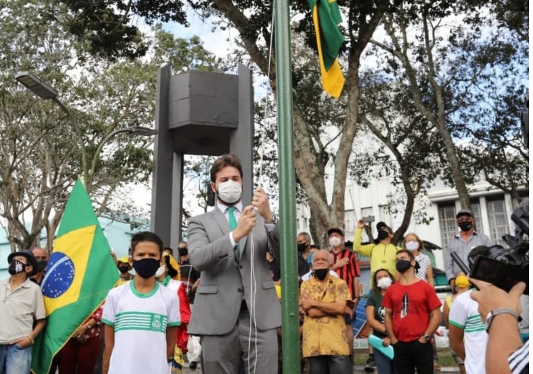 O prefeito Bruno Cunha Lima participou na manhã desta terça-feira, 7, na Praça da Bandeira, do ato solene de hasteamento das bandeiras, como parte das atividades alusivas à Semana da Pátria, realizada pela Prefeitura de Campina Grande, por meio da Secretaria Municipal de Educação (Seduc). Devido à pandemia do novo coronavírus, não ocorreu o tradicional desfile cívico-militar.