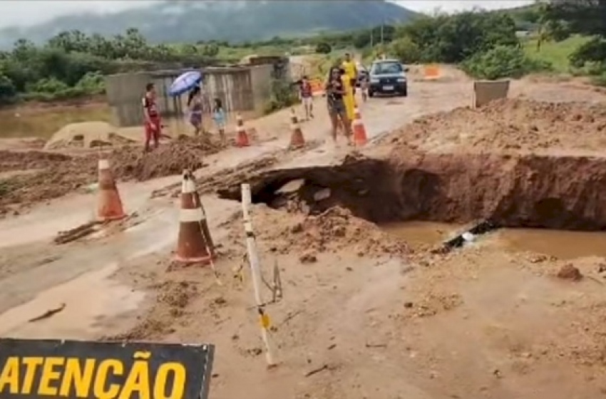 As fortes chuvas que atingiram o Sertão da Paraíba no fim de semana provocaram graves transtornos no distrito de Engenheiro Ávidos, na zona rural de Cajazeiras. Um trecho da rodovia PB-394, que passa por obras de pavimentação, foi tomado pelas águas de um riacho e cedeu, deixando a principal via de acesso ao distrito completamente interditada.