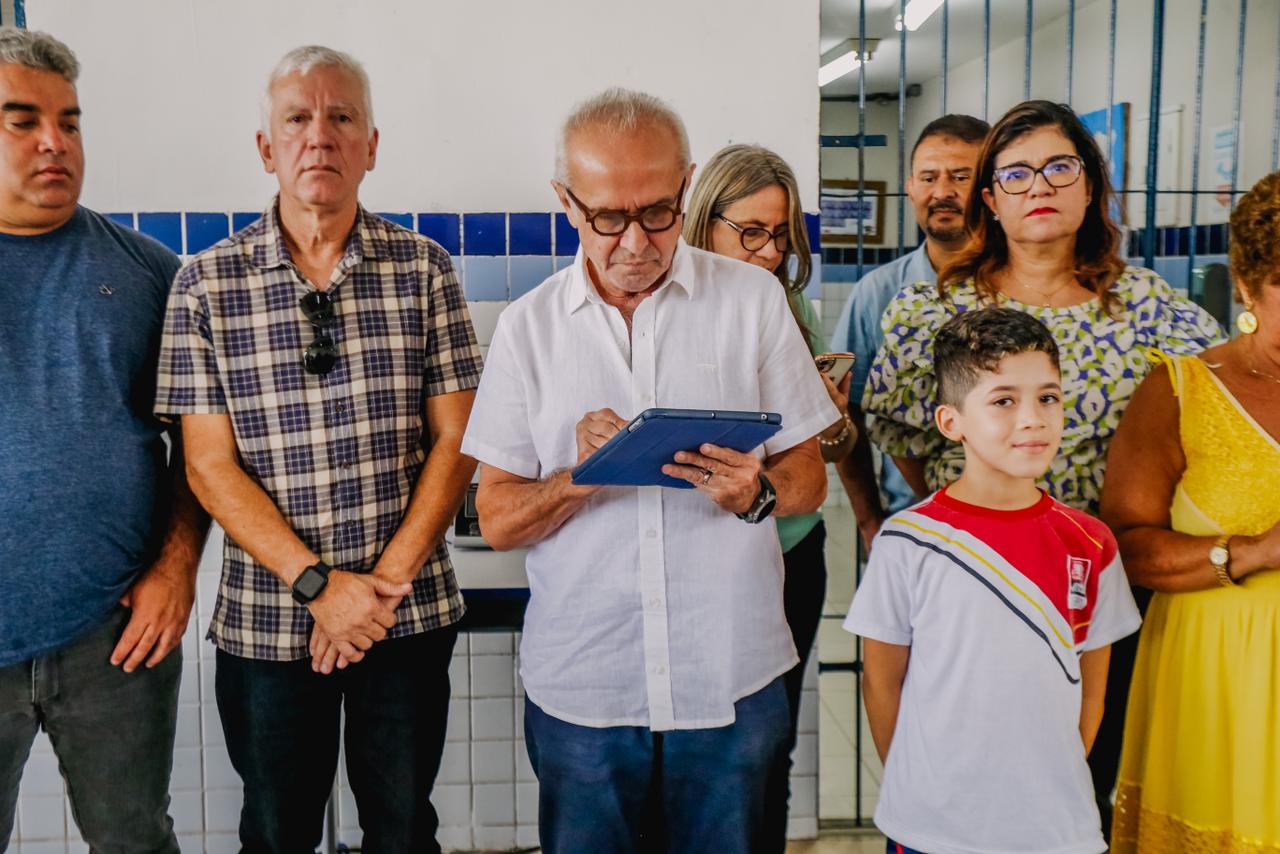 O prefeito Cícero Lucena e o vice-prefeito Leo Bezerra autorizaram, na manhã desta sexta-feira (3), o início das obras de reestruturação da Escola Municipal João Santa Cruz, no Bairro dos Novais. Com o ato a gestão chega ao número de 56 unidades com obras iniciadas, tendo 12 delas já sido finalizadas e entregues à população.