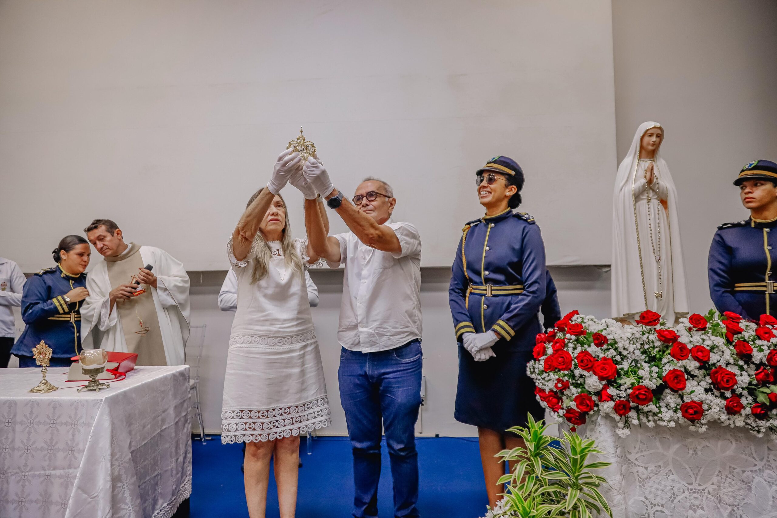 A manhã desta quarta-feira (15) foi especial para os fiéis católicos, em João Pessoa, que puderam celebrar a chegada da imagem peregrina de Nossa Senhora de Fátima, vinda do Santuário dedicado à santa em Portugal. No Centro Administrativo Municipal (CAM), em Água Fria, houve celebração de missa pelo padre Paulo Cordeiro, com a presença do prefeito Cícero Lucena, acompanhado da primeira-dama, Lauremília Lucena.