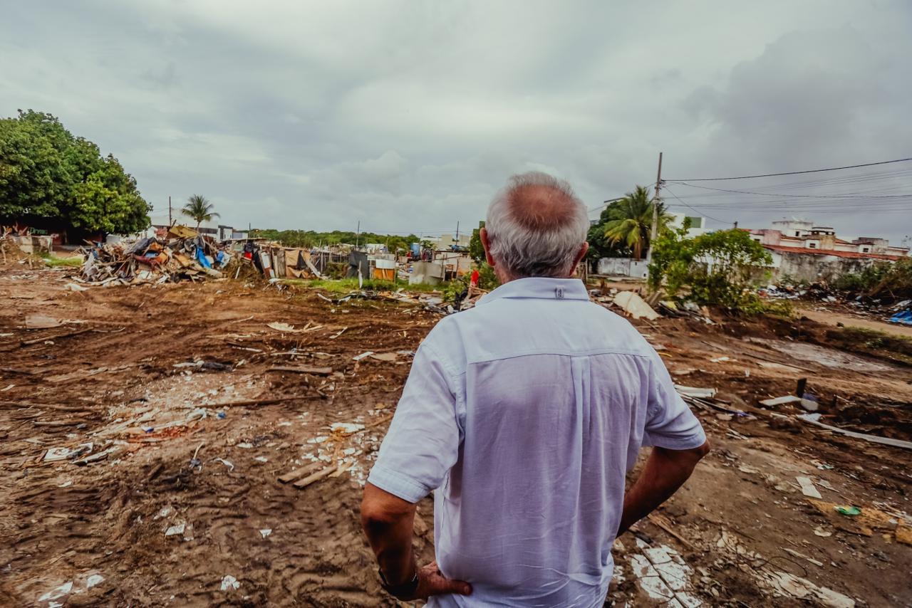 O prefeito Cícero Lucena acompanhou, no final da tarde desta segunda-feira (6), os trabalhos de demolição de barracos em uma comunidade quilombola no bairro Muçumagro, na zona sul de João Pessoa. No local, 80 famílias moravam em situação insalubre e agora vão ganhar moradia digna após acompanhamento da Prefeitura de João Pessoa e construção de um novo residencial.