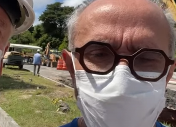 O prefeito de João Pessoa, Cícero Lucena (Progressistas), vistoriou as obras de reparo na Av. Pedro II neste sábado (4) após a cratera que se abriu na via nessa sexta-feira engolir um veículo de passeio.