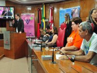 Compuseram a mesa de trabalho, o propositor da sessão e representantes das seguintes secretarias: da Saúde – Secção Municipal de DST/Aids, Clarice Pires; da Mulher e da Diversidade Humana – Gerência Executiva de Direitos Sexuais e LGBT, Roberta Schutz; de Desenvolvimento Social – Diretoria de Assistência Social, Roberto Maia; de Políticas Públicas para Mulheres – Coordenadoria de Saúde, Aylla Milanez e o presidente da União Voluntária aos Soros Positivos (Uvas), Edvaldo Fernandes.