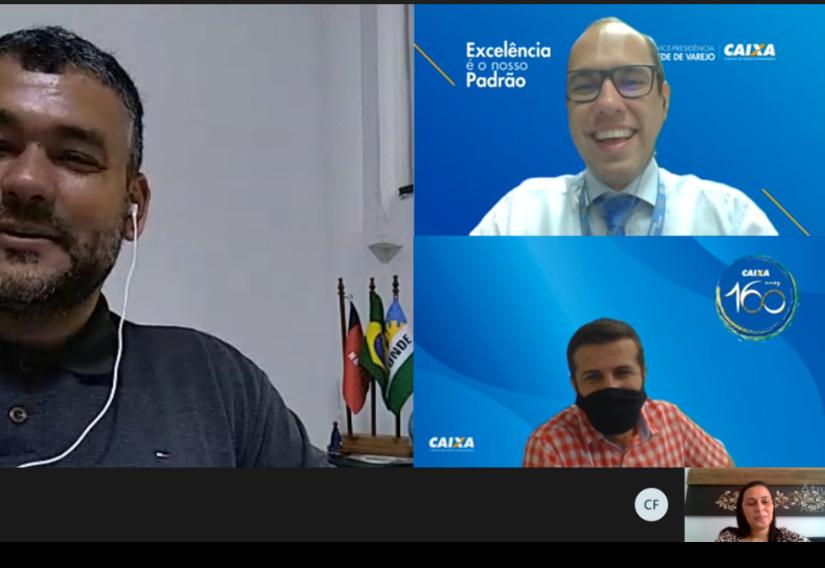 Na manhã de hoje, o secretário de Planejamento, Marcio Simões, e Coordenadora da SEPLAN Maria Erica de Lira Santos, participaram de reunião remota com os representantes da CEF: Celizo Bezerra Filho (gerente regional), Ronilson Barbosa (coordenador de filial) e Flávio Marinho Leal (superintendente executivo governo).