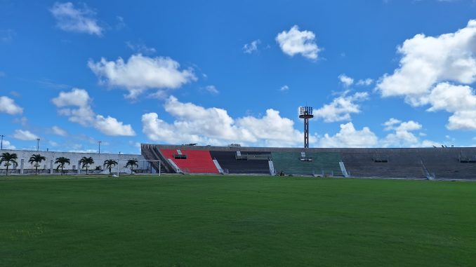 Entretanto, até o jogo de domingo, deve estar concluído este serviço até metade da arquibancada, onde também serão pintados a bandeira da Paraíba e o logotipo do governo do estado.