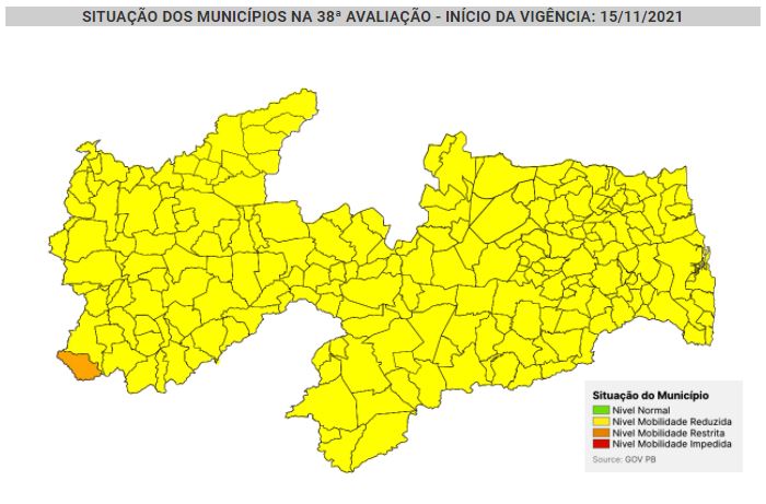 Na avaliação anterior, o município de Cacimba de Areia também encontrava-se com a classificação laranja, no entanto, com a mais recente atualização, a cidade passou a figurar na bandeira amarela, assim como, todos os demais municípios do estado.
