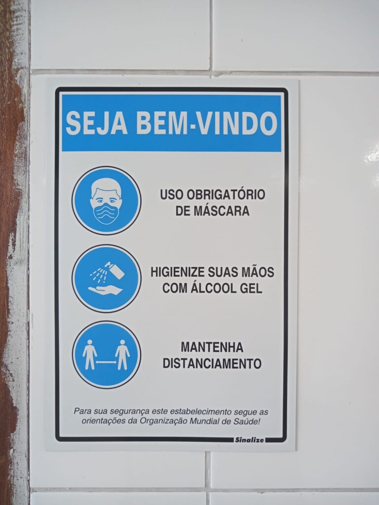 Consumidor, demarcações de fluxo de pessoas, lixeiras sem o dispositivo de pedal que evite o uso da mão, distanciamento mínimo e direção das carteiras sem que estejam em frente uns aos outros.