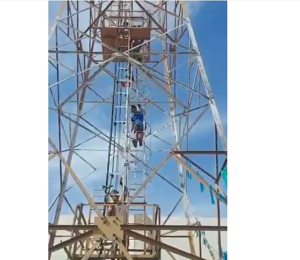 De acordo com as informações, ao chegar no local, a polícia encontrou o menino em cima da torre e dois homens tentando convencê-lo a descer.