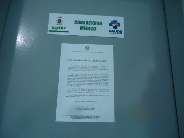O Conselho Regional de Medicina do Estado da Paraíba (CRM-PB) fiscalizou a Unidade Básica de Saúde Baralho, em Bayeux, na última sexta-feira (18) e interditou eticamente os médicos que trabalham no local.