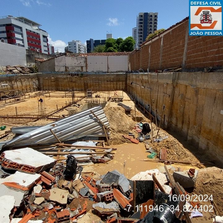 A Coordenadoria Municipal de Proteção e Defesa Civil de João Pessoa (Compdec-JP) realizou, nesta terça-feira (17), a desinterdição da obra de um prédio no bairro de Tambaú, que havia sido interditado na segunda-feira (16), após o desabamento do muro de contenção.