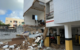 Com a queda da estrutura, uma moto e um carro estacionados foram atingidos e ficaram parcialmente destruídos.
