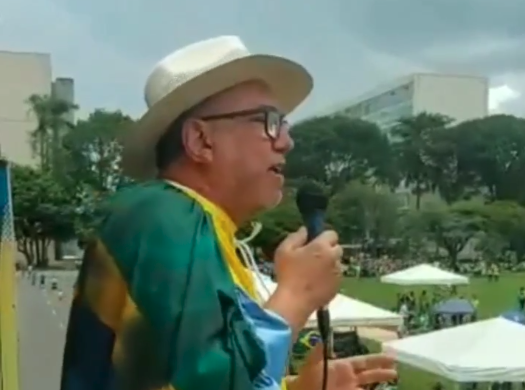 A fala do militante bolsonarista se deu durante um ato em Brasília. É possível ver, no vídeo, tendas e pessoas trajando roupas verde e amarela com a bandeira do Brasil.