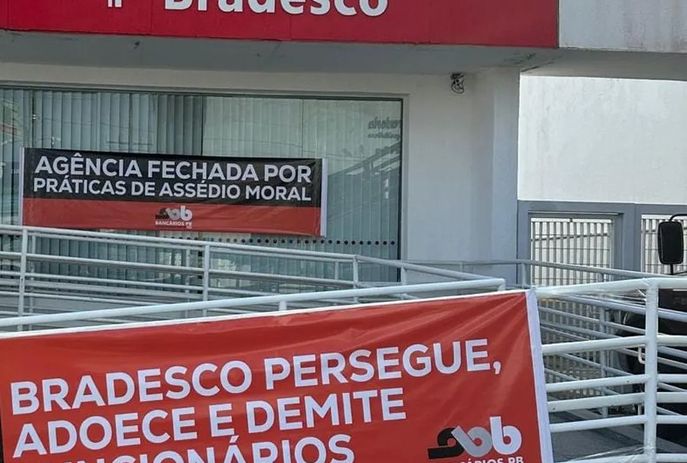 Uma agência do banco Bradesco ficou impedida de funcionar nesta quarta-feira (19) devido à manifestação organizada pelo Sindicato dos Bancários da Paraíba em virtude da quantidade de denúncias de assédio contra funcionários.