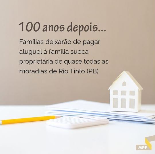 O Ministério Público Federal usou seu perfil numa rede social para comunicar que, após 100 anos, cerca de 700 famílias deixarão de pagar aluguel à família sueca proprietária de uma grande quantidade de imóveis no município de Rio Tinto, cidade no Litoral Norte da Paraíba.